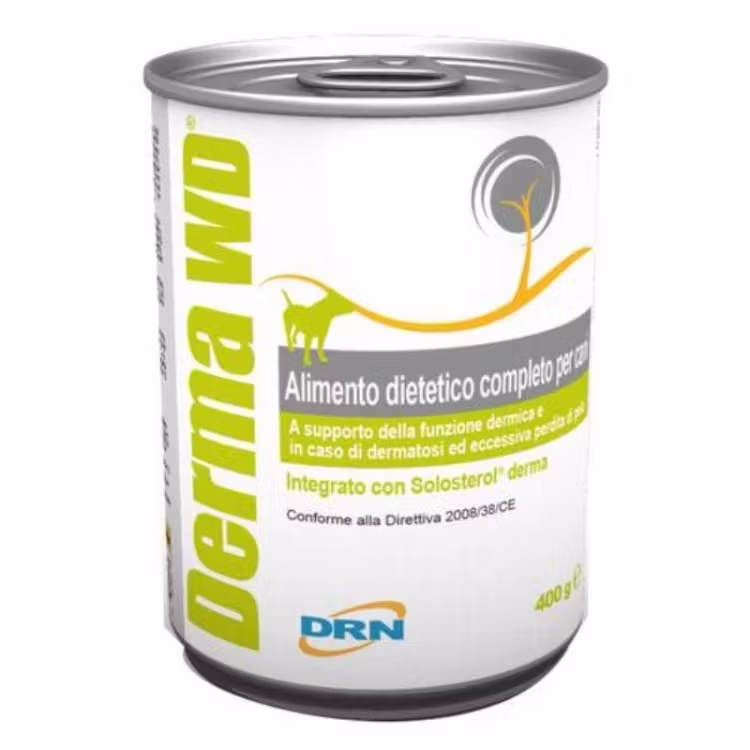 Derma WD dieta umeda, 400 g este o hrana completa pentru caini, indicata in optimizarea functiilor dermice, combaterea dermatitelor si a naparlirii excesive. Ingredientele sale contribuie la reducerea pruritului, escoriatiilor si caderilor masive de par.