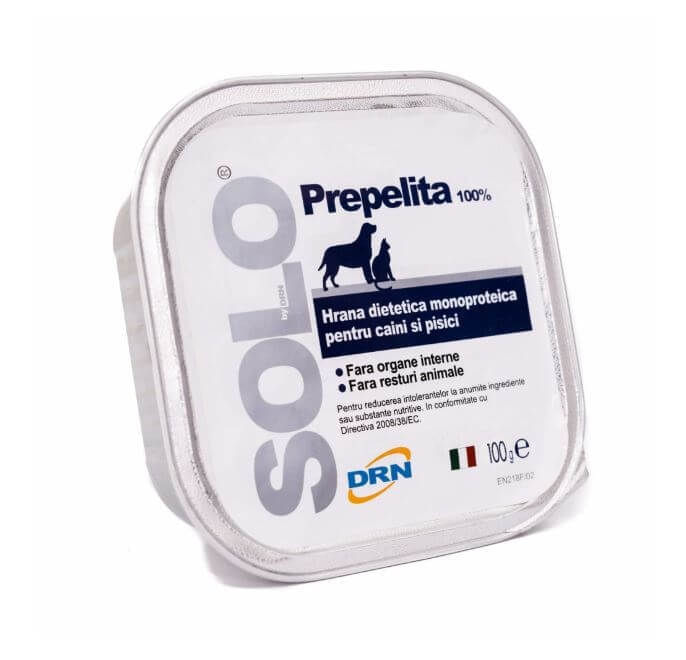 DRN Solo Dog Cat cu prepelita este o hrana umeda dietetica monoproteica pentru caini si pisici. Se recomanda atunci cand este necesara o masa apetisanta, cu un continut proteic usor digerabil si valoare biologica ridicata. Indicata in mod special pentru dietele de excludere a intolerantelor alimentare la anumite surse proteice. Contactati medicul veterinar inainte de folosirea sau prelungirea utilizarii acestui produs, deoarece pot aparea schimbari de dozaj sau mod de folosire in functie de simptomele individuale ale animalului.
